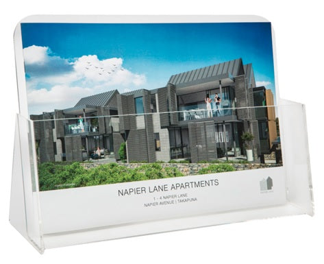 The A4 landscape brochure holders are recognised internationally for their style quality and durability. Manufactured from extremely hard wearing acrylic, these brochure holders are designed to withstand the harshest display conditions and are available in free-standing or wall-mounting forms.