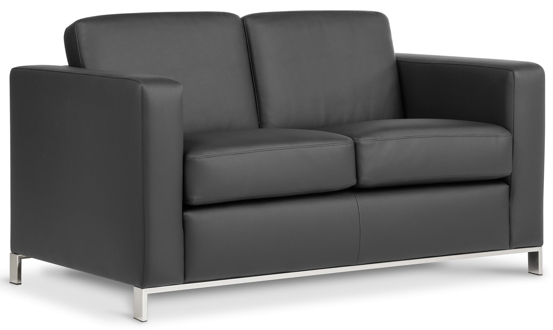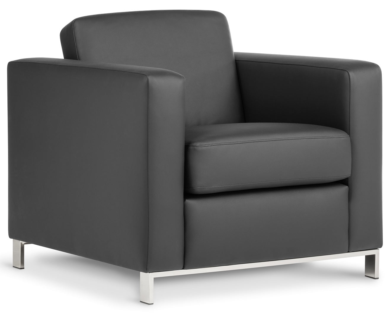 A simple classic-style 2-seater sofa and matching chair. Carlo is a classic waiting-area duo featuring generous sizing, spring-seat comfort, and a smart black and chrome finish. Carlo is upholstered in a matte black leather-look vinyl covering.