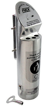 This smokers cigarette butt bin - is designed for keeping public areas clear of discarded butts - as it can be affixed to a wall or post - and is accessed for emptying by a Turn Key