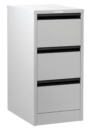 An affordable, stylish and attractive commercial grade 3 drawer filing cabinet for efficient storage in any office environment. These vertical drawer filing cabinets accomodate standard Foolscap Suspension Drop Files. Available in 3 popular colours