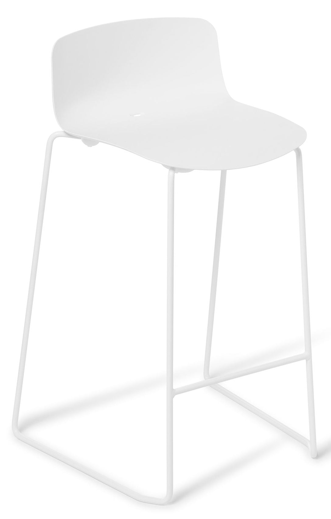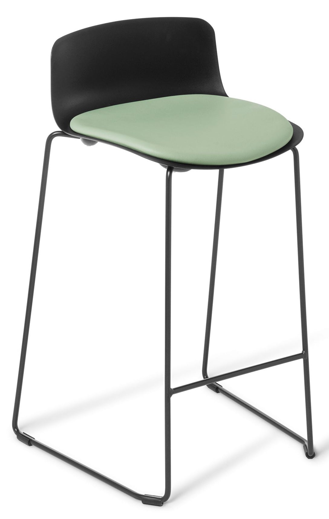 A versatile stool family with uncomplicated contemporary styling. Coco Stool features a seat shell of UV-stabilised polypropylene, and an elegant steel rod sled frame. It's available in two heights in a modern range of colours with the sled frame in White or Black, and with seat pad or full upholstery options. Without upholstery, it is suitable for outdoor use. They can be paired with Coco 4-Leg, Coco Sled and Coco Swivel to create a full chair family.