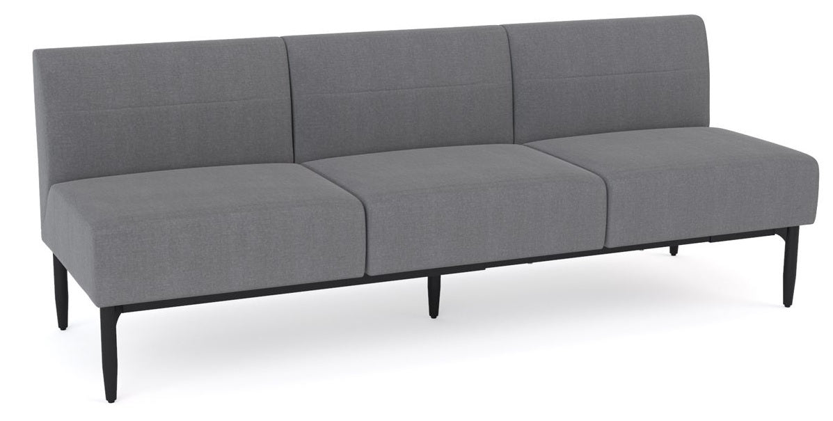 Modular lounger seating with backrest provides for affordable and flexible reception seating or collaborative team spaces. Available in single, double or triple seat loungers and upholstered in Granite Grey fabric with black 4 leg welded powder-coated frame