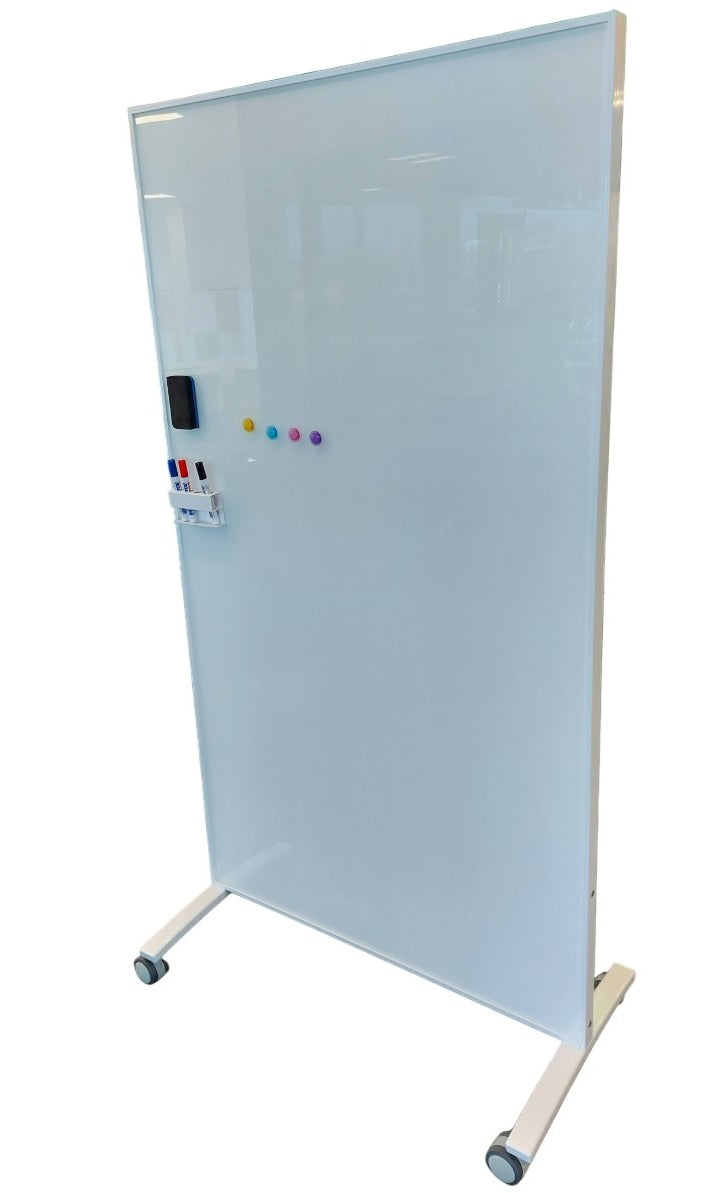 Check out our shiny new CONVO™ double-sided mobile units! These are super-flexible with so many options – whiteboards, glassboards or pinboards on both sides, have a combination of these options on either side of the board. Choose from white, black or customised frame colours and the dividers are supplied on quality braking castors. Clear glass mobiles are also available for the perfect COVID-protection movable screen in your workplace! Contact us now to discuss your requirements