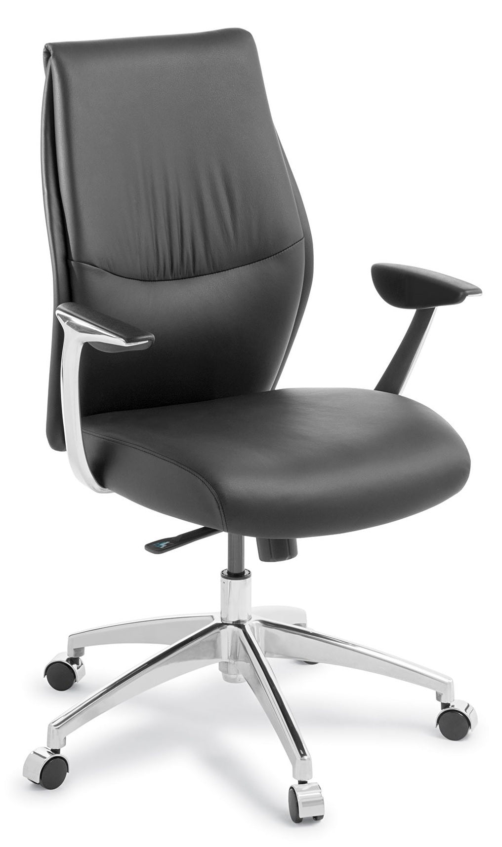 Elegant boardroom seating with modern function and timeless styling. Domain is available in two backrest heights and features high comfort cushioning and tailored upholstery finishing, with sleek polished aluminium armrests and base. It features a smooth supportive synchro mechanism. Domain is upholstered in a refined genuine leather and leather-look combination.