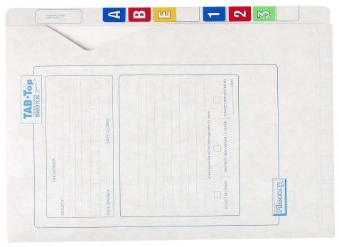 Cleverly designed envelope file for smaller batches of documents or forms, with label Tabs across the back cover of the file so the file can be easily identified when sitting in a filing drawer. This eliminates the need for suspension drop files and additional name tags to identify the file when it is sitting in the drawer