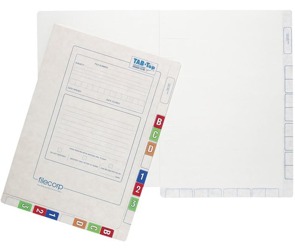 Cleverly designed open file with label panel already attached acorss the back cover of the file so when it sits in a drwawer the labels are clearly visible when the drawer is open. This eliminates the unnecessary cost of suspension drop files and additional label tags for filing these files in a drawer