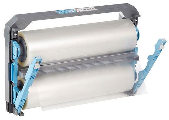 Laminating film cartridge for the GBC Foton 30 Automated Laminator - easy to load self-threading cartridge makes changing film simple. Pouchless lamination means never having to load a pouch again - and the laminating machine trims the finished document to size. Avaialble in 75 micron and 125 micron.