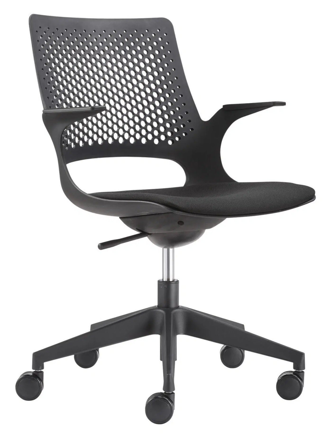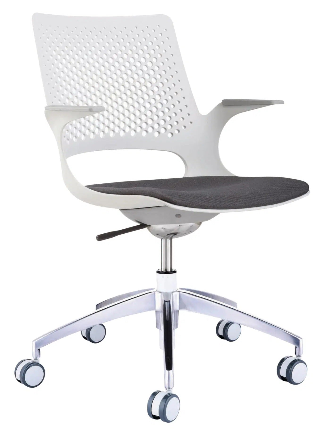 The Konfurb Harmony 5 Star is an active seating office chair, designed to improve posture by encouraging natural movement and flexibility. Featuring a contoured moulded shell with the option to add custom fabric to the seat pad, for a stylish award-winning designer office chair. Perfect for meeting rooms, collaborative hot-desking, educational spaces and home offices.