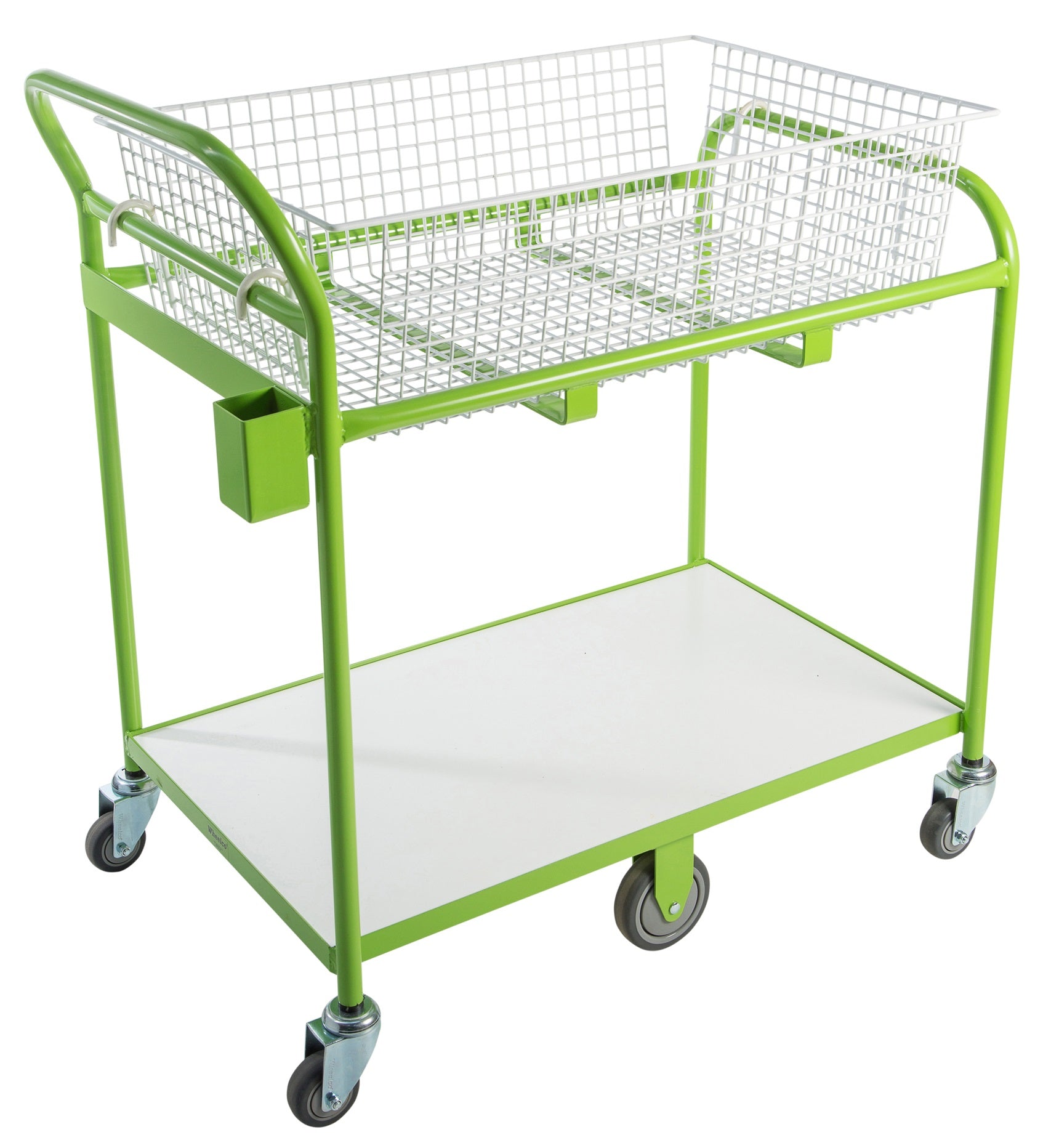 This larger basket Trolley has always been in high demand and now with the added advantage of a melteca shelf on the bottom, this trolley is ideal for use with in government departments, postal distribution centres, libraries, warehouses or hospitals where large volumes of small or bulky items need to be transported