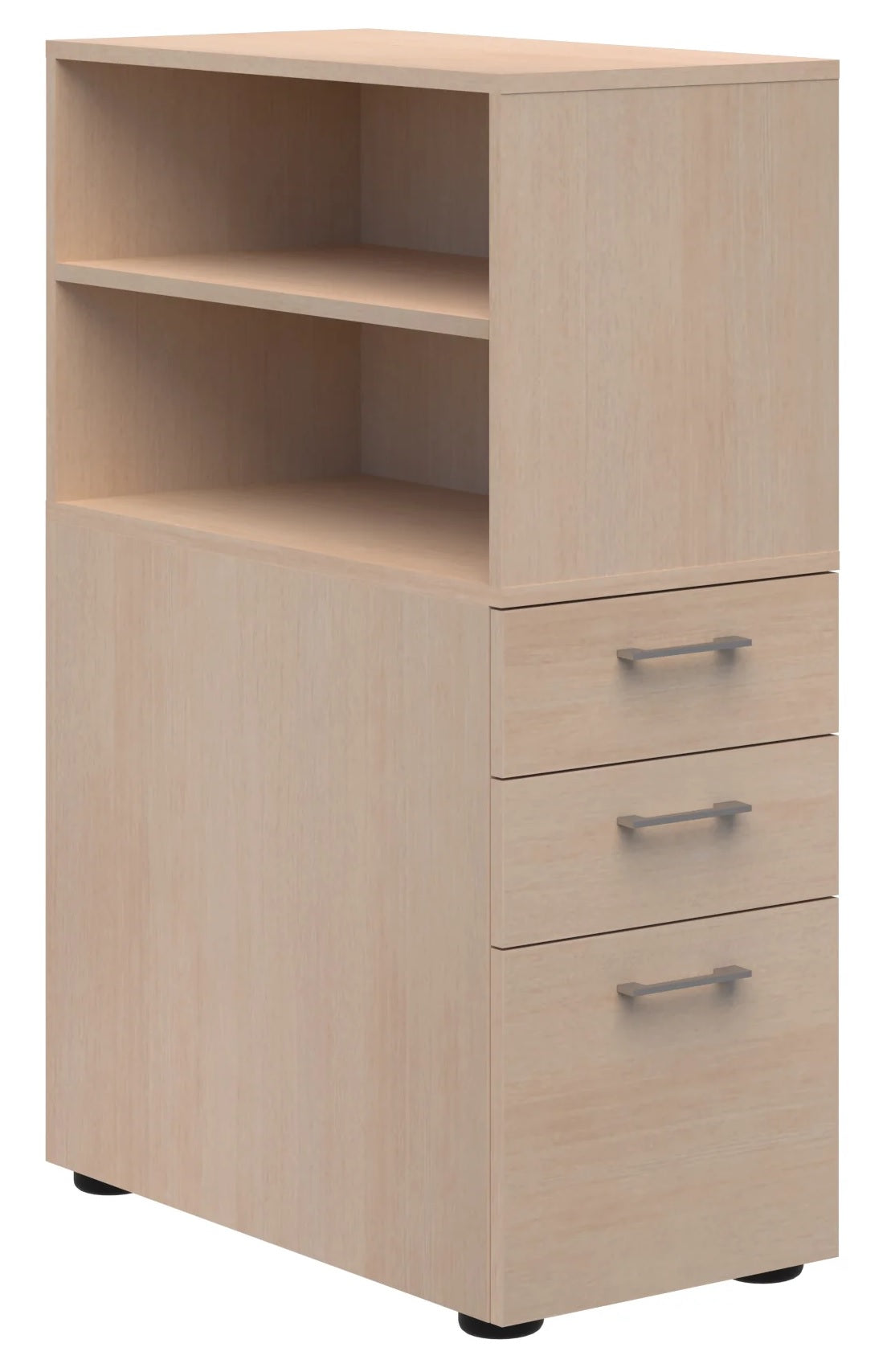 The Mascot Open Shelf and Drawers Personal Storage units are available in a right side orientation and with non-locking and locking pedestal.