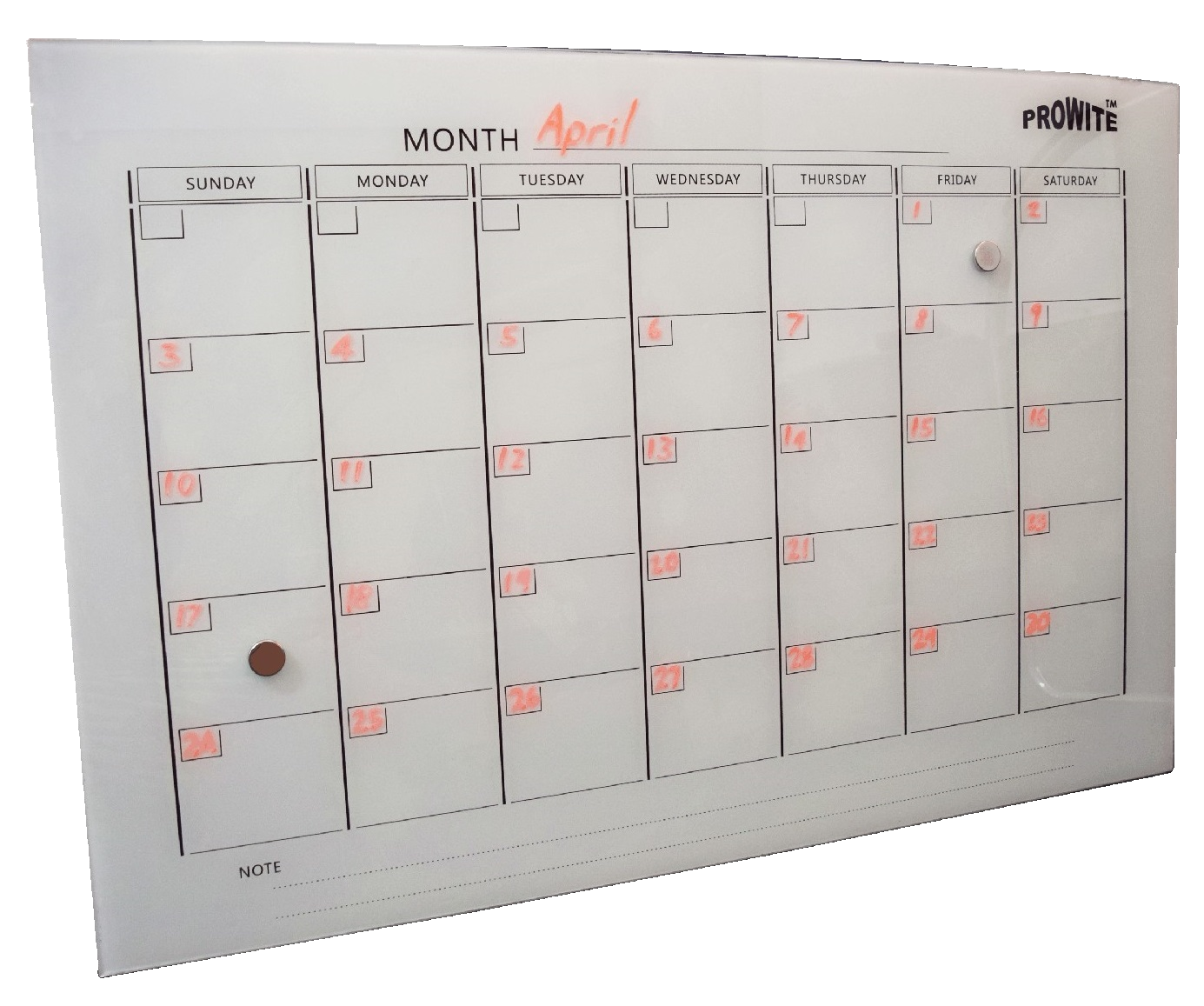 PROWITE Monthly Planner Glass Writing Board - 600mm x 900mm - 2 Colours