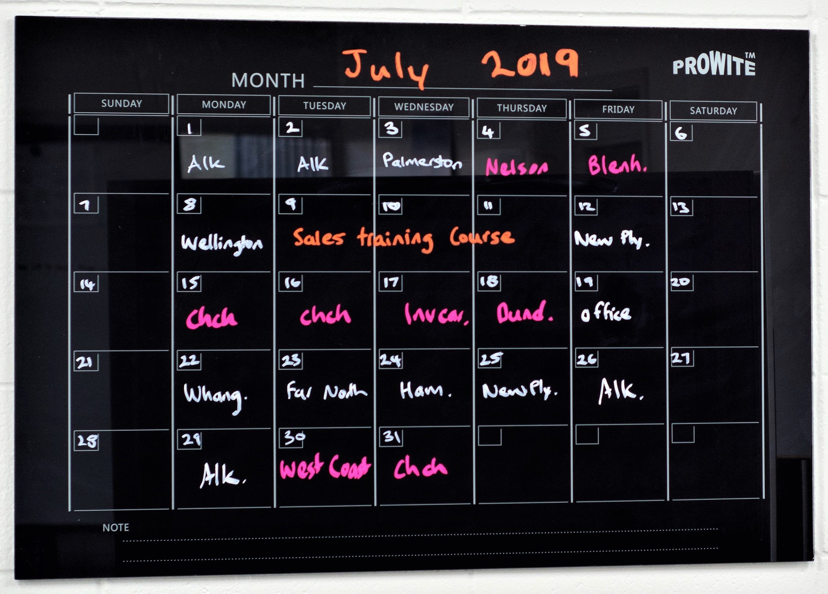 For the ultimate look for your office, boardroom, reception or training room and to maintain your schedule in style, try the monthly planner glass writing board for a modern, stylish and trendy, yet a very effective alternative to the traditional whiteboard. Available with a White or Black back.