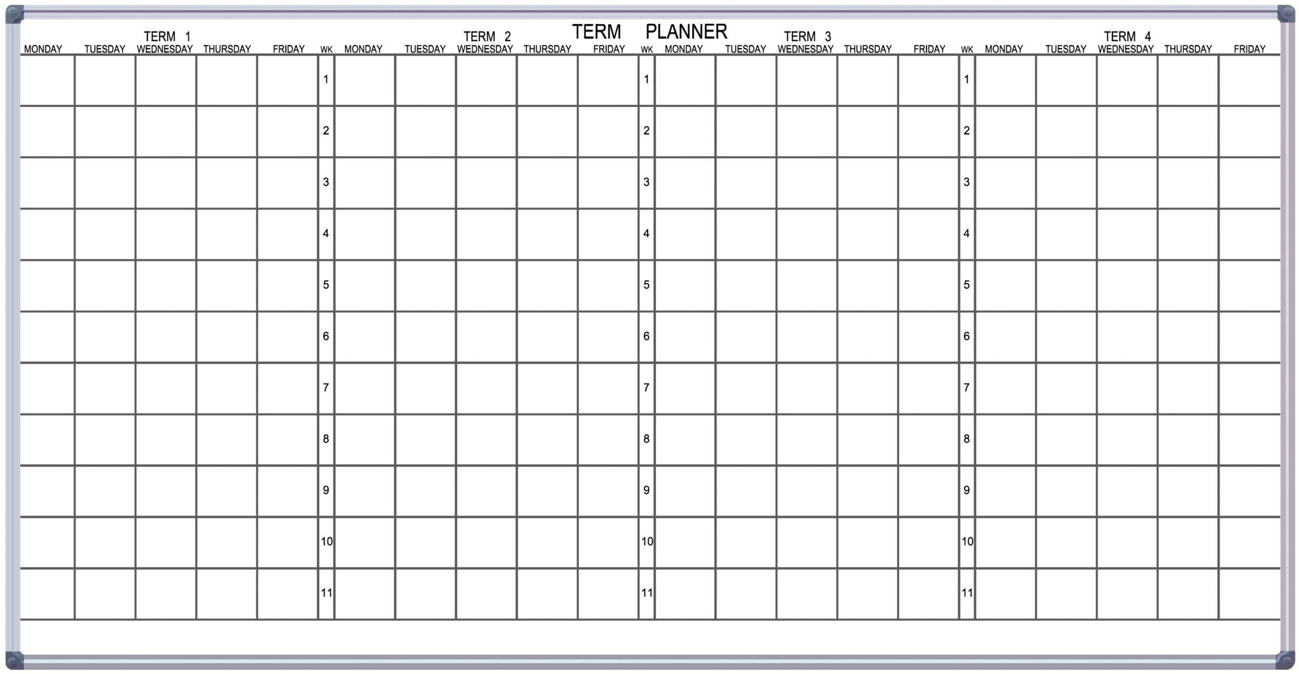 The Prowite Four-Term School Term Planner helps you to plan major events, staff meetings, school goals, assemblies, school trips, galas or anything that will happen during the year. This easy-to-edit Term Planner Whiteboard is the perfect event planner that every school should have.
