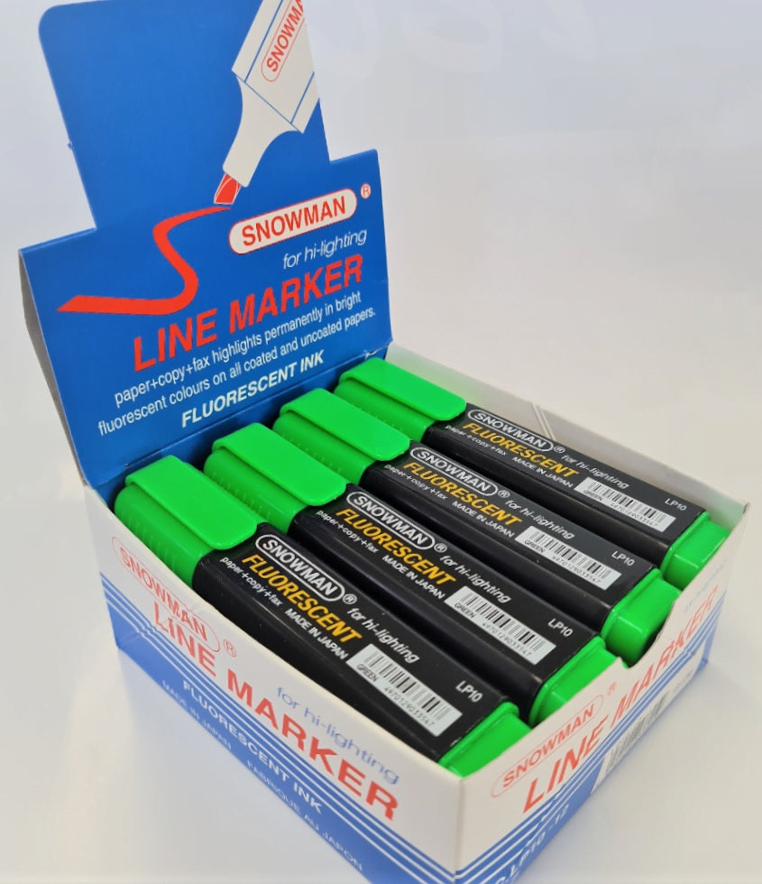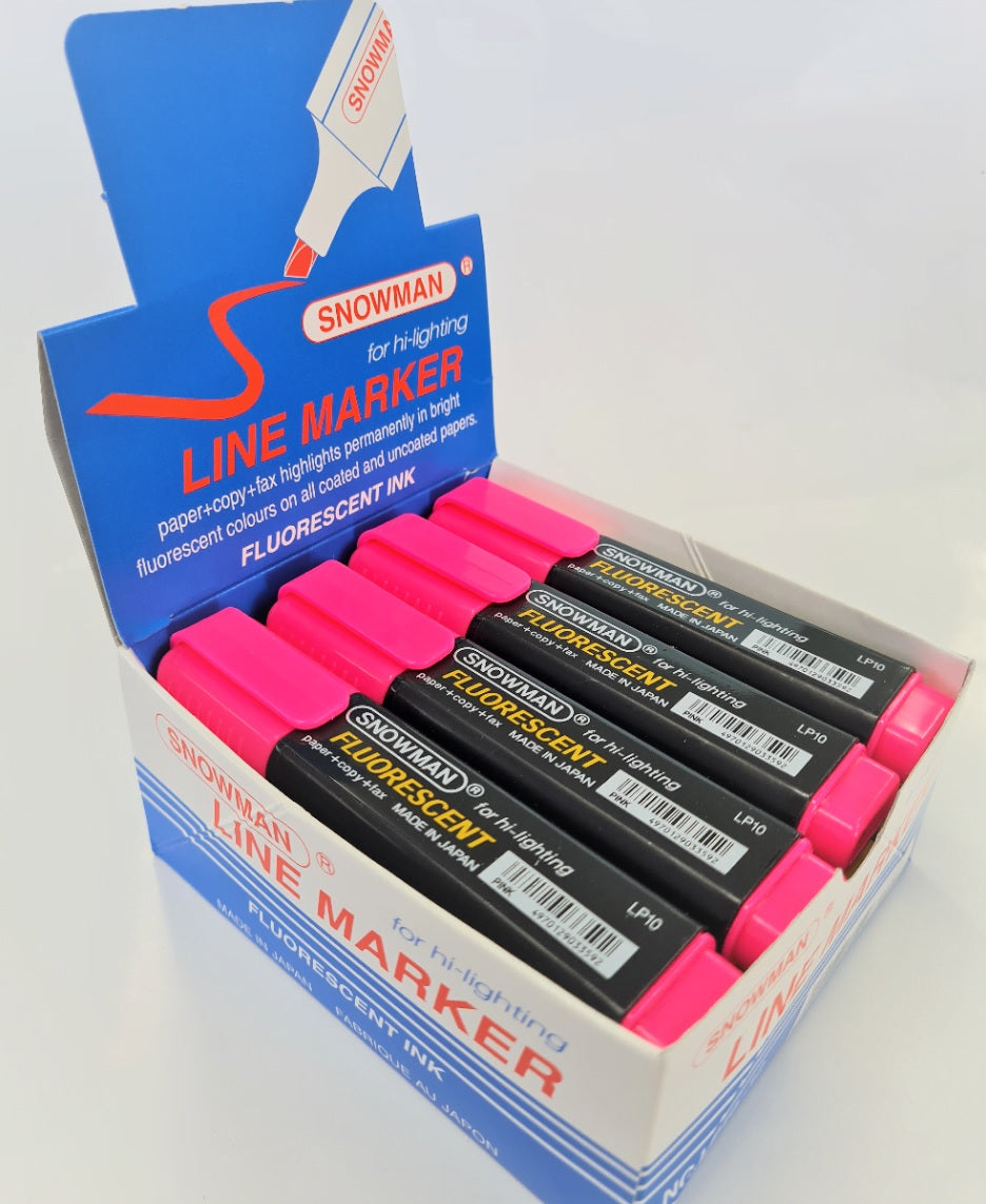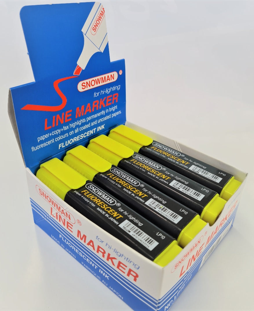 Snowman highlighter markers have an established reputation for writing quality, with bold ink colour right to the last drop. They are used extensively in schools and offices throughout New Zealand due to their long lasting and vibrant colours.