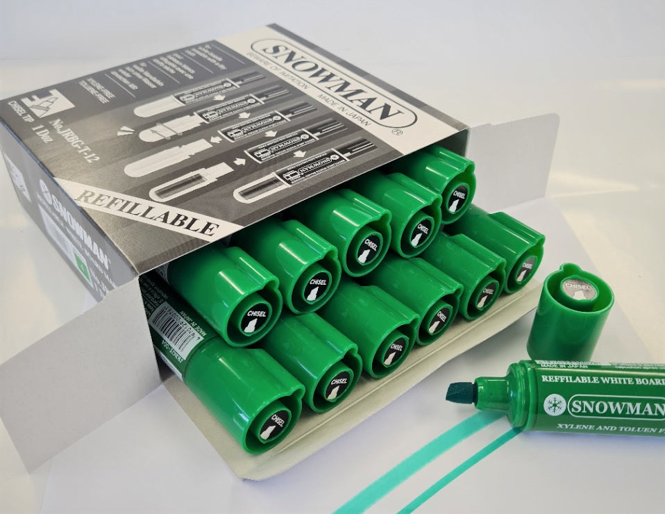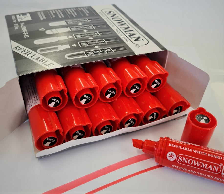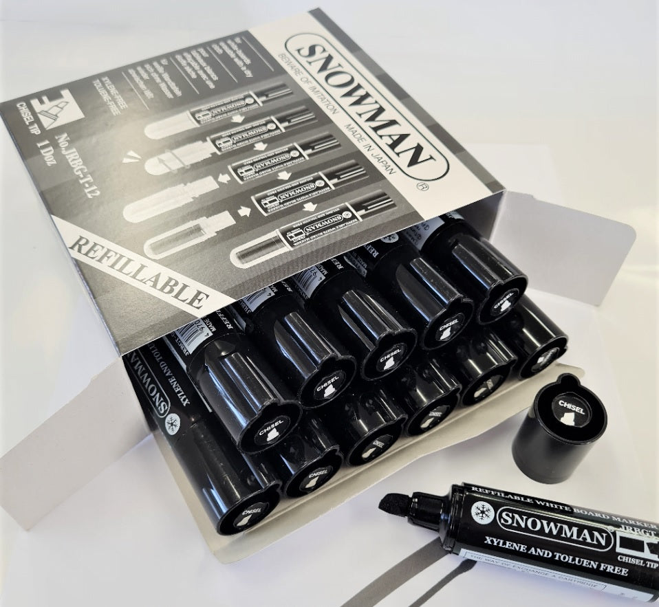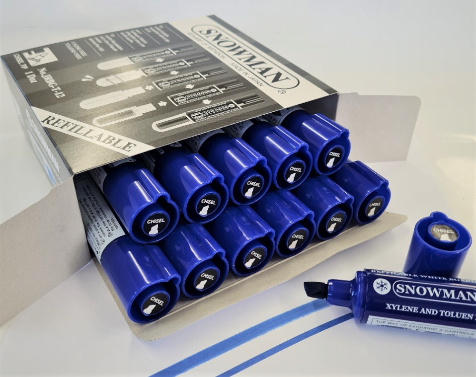Snowman Wide Chisel Tip Whiteboard Markers - Box of 12 - Refillable