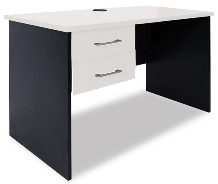 The Sonic Desk with two small drawers is strong and sturdy with a hard wearing melamine surface that is durable and scratch resistant. Designed for commercial use, this classic design desk with drawers will suit any office or home. Other matching products are available in the Sonic range to create a cohesive feel to your workspace.