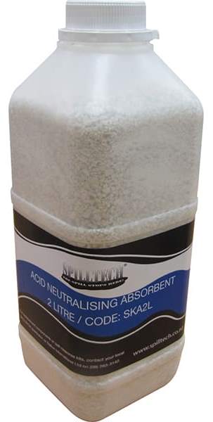 Spilltech acid neutralising absorbent not only neutralises acid spills but also absorbs the spill. Perfect for battery acid spills - but not recommended for Hydrofluric Acid or fuming Sulphuric or Nitric Acid or Peroxy Organic Acid. Available in 1 or 2 litre containers
