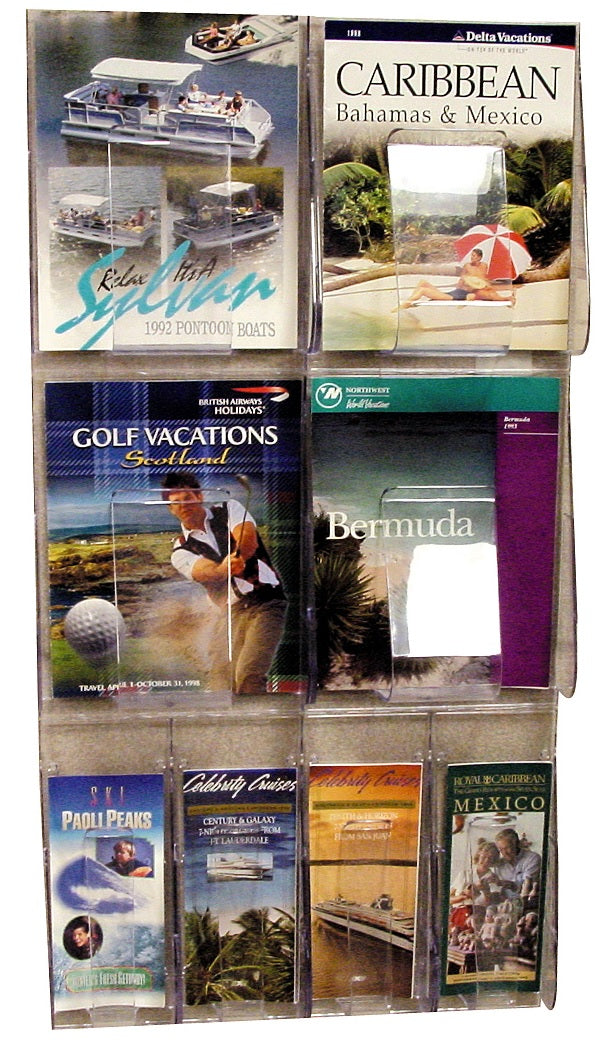 Deflect-o pre-assembled wall mounting brochure holders are the ideal solution for trade shows or busy display areas where you need to display large numbers of different brochures or brochures of different sizes. Manufactured from injection moulded crystal clear plastic, the pre-assembled wall mounting brochure holders give you total flexibility with the presentation of your brochures.
