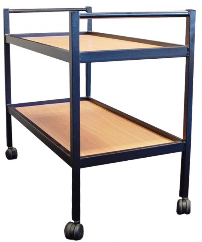 A very affordable locally made two level general purpose service Trolley with a fully welded frame and avaible in a choice of poweder-coat and melteca shelf colours - ideal for catering, kitchen servicing or in the office as a general transport Trolley