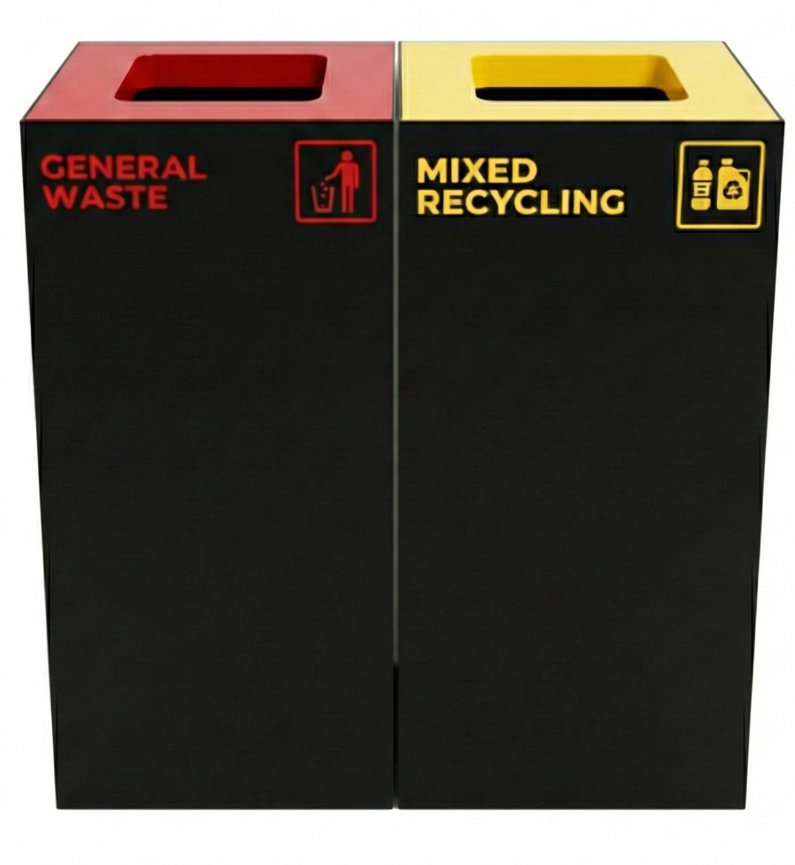 This Indoor Waste & Recycling Bin system is purpose-built for general waste and recycling collection in modern indoor environments. Constructed from galvanised steel, it combines strength, stability, and easy maintenance. The removable 52L internal insert simplifies emptying and cleaning, while the open-top design supporting quick, hygienic waste disposal.