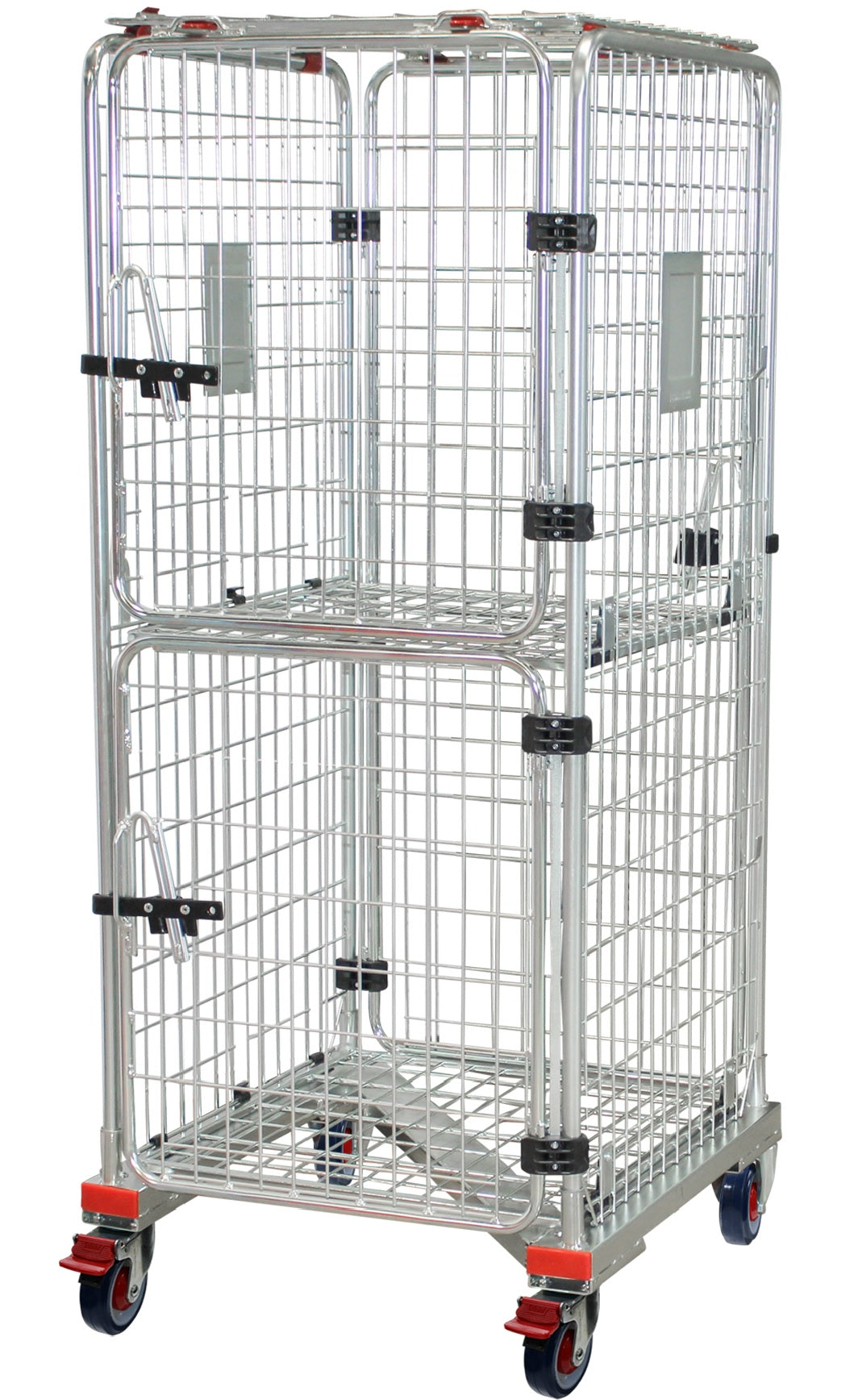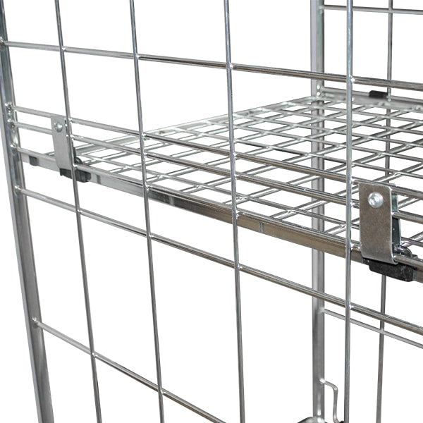 Very reasonably priced, quality designed 2 sided roll cage in zinc-plated steel which can be configured open or with shelf, Additional shelves (2 grid options), single complete door or two half doors are available on inquiry. Supplied with strong ratchet strap to secure loads